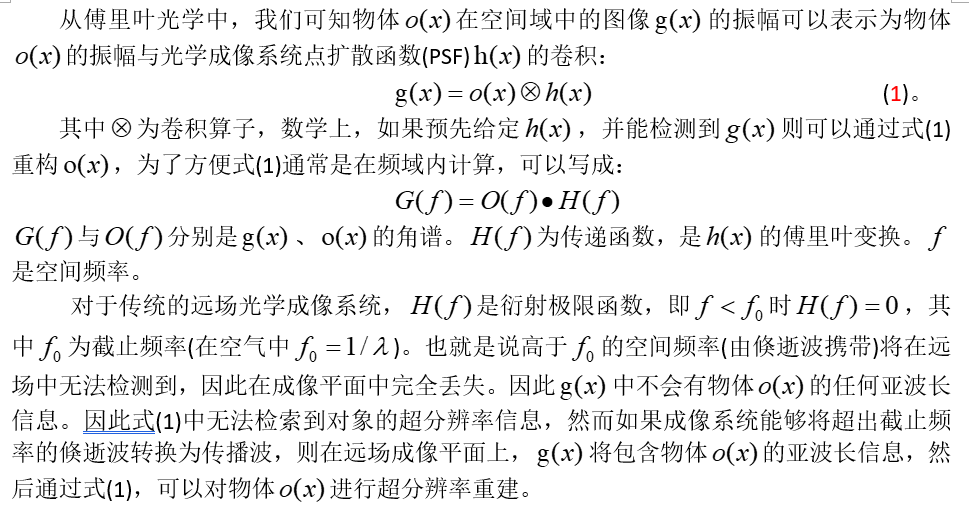 1. 超出衍射极限的高空间分辨率光学成像需要由倏逝波携带目标信息,倏逝波随距离目标呈指数衰减,仅在近场可探测到。