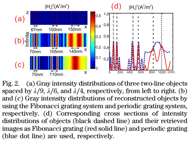 1. 利用一维斐波那契光栅将倏逝波转换为传播波,实现远场超分辨成像。