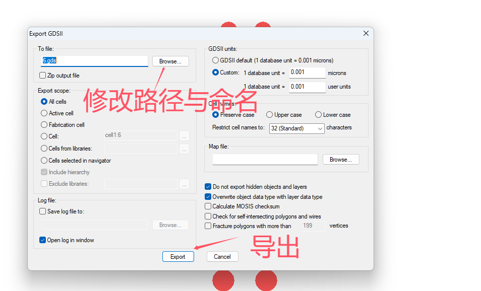 参考博客:gds文件 导出_Ledit导出GDS时,圆变成了多边形应该怎么办?