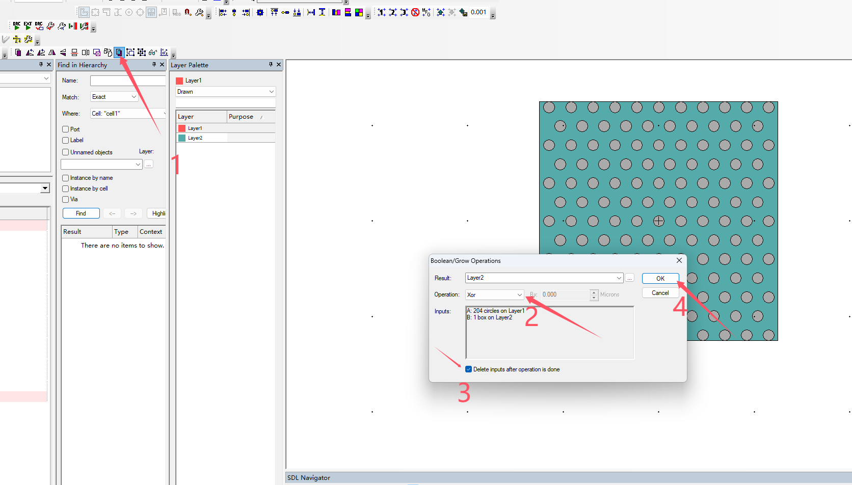 - GDSII文件导出时,导出要使用的那个层,不要把所有的层都导出。
