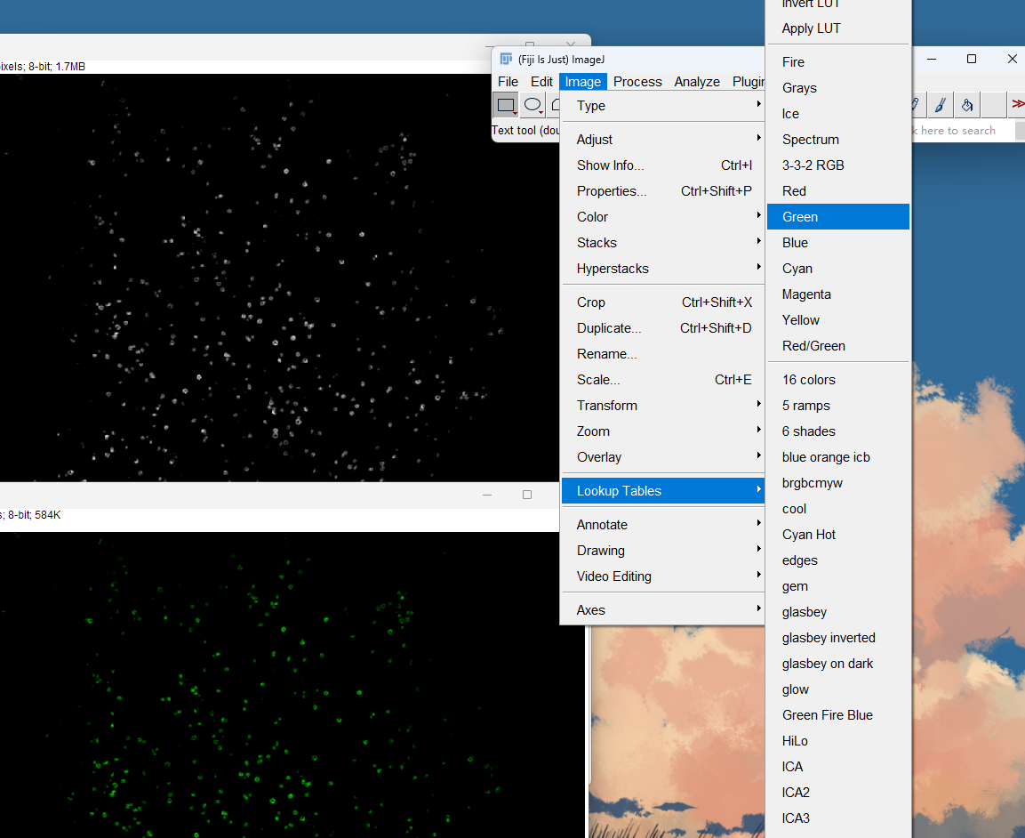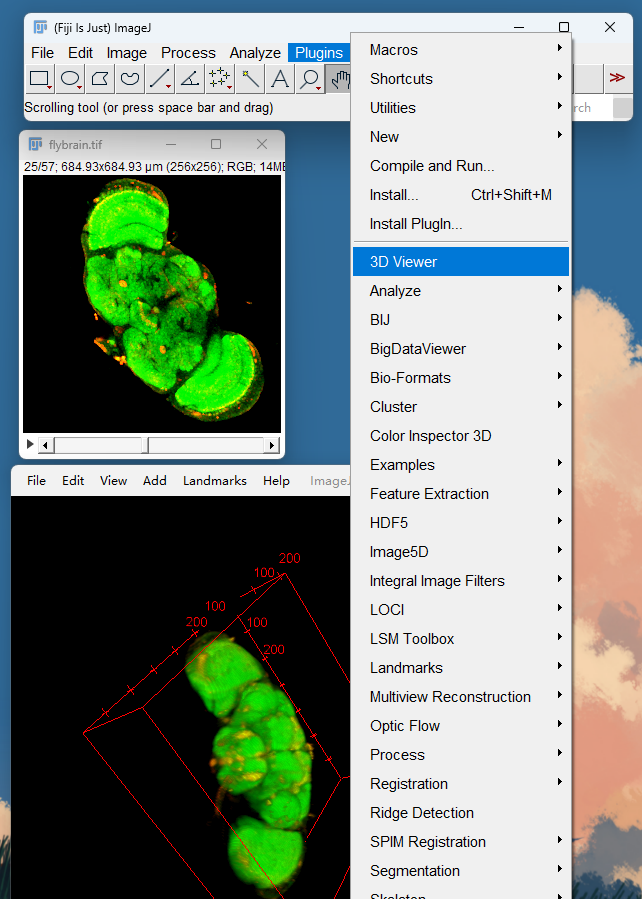 图像RGB分解 把其中的一个颜色图像取出来 右击图片,选择Duplicate。 灰度图添加颜色 光强图 点击Live还可以实时更新。 3D View灰度图像的3D View 3D图像 选择样品,Fly Brain。 Threshold