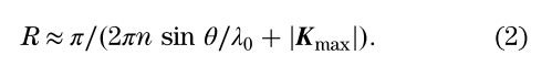 其中K_max是系统的半带宽,因此可以在远场中成像亚波长细节。最佳横向分辨率可以表示为: